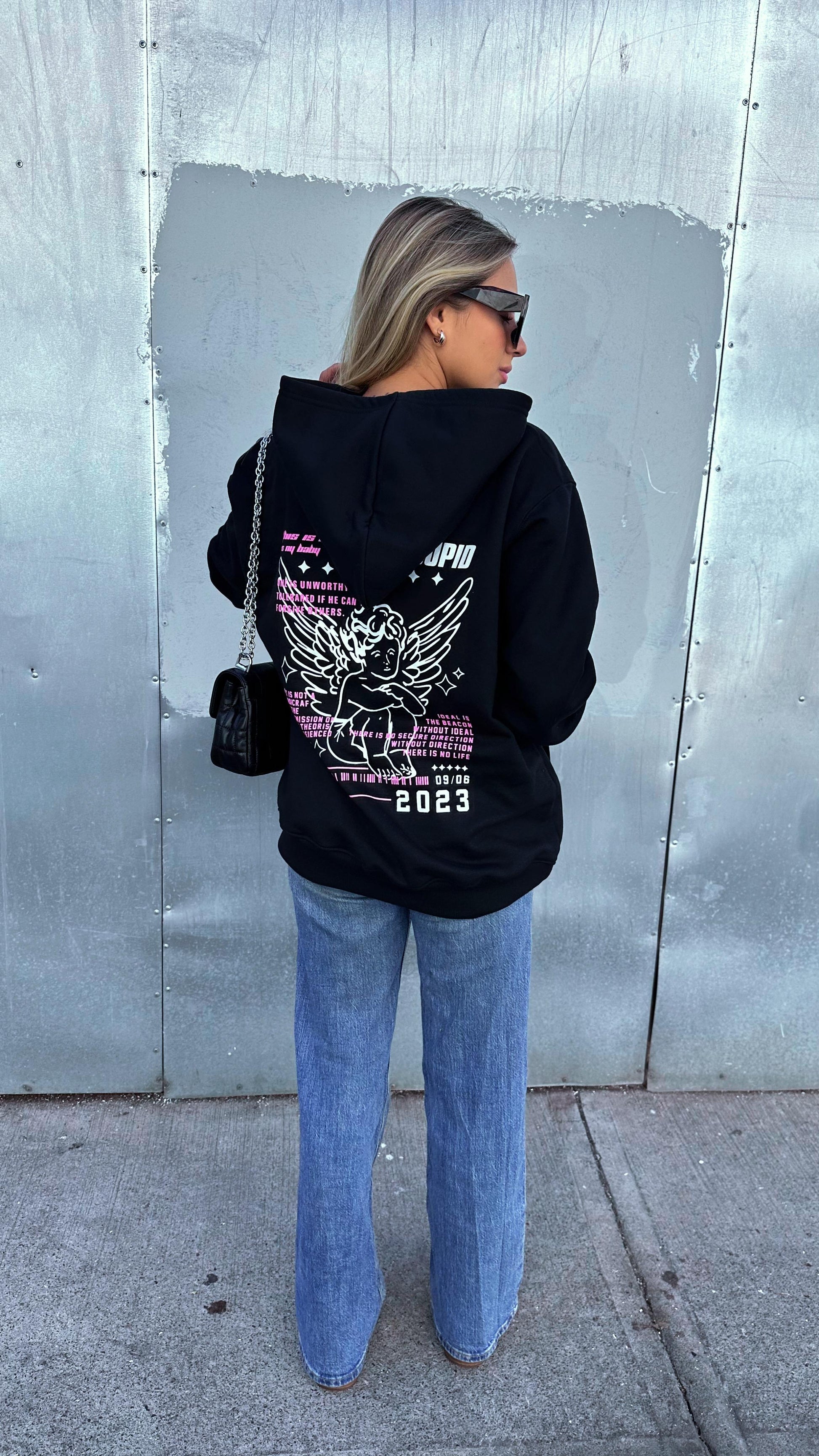 Con un diseño gráfico exclusivo de un tierno Cupido alado, este polerón combina lo cute con lo street. Perfecto para darle un aire moderno, relajado y lleno de personalidad a tus looks del día a día.